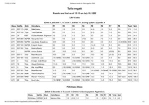 Sailwave results for Toila regatt at 2022. Tulemused II. Final